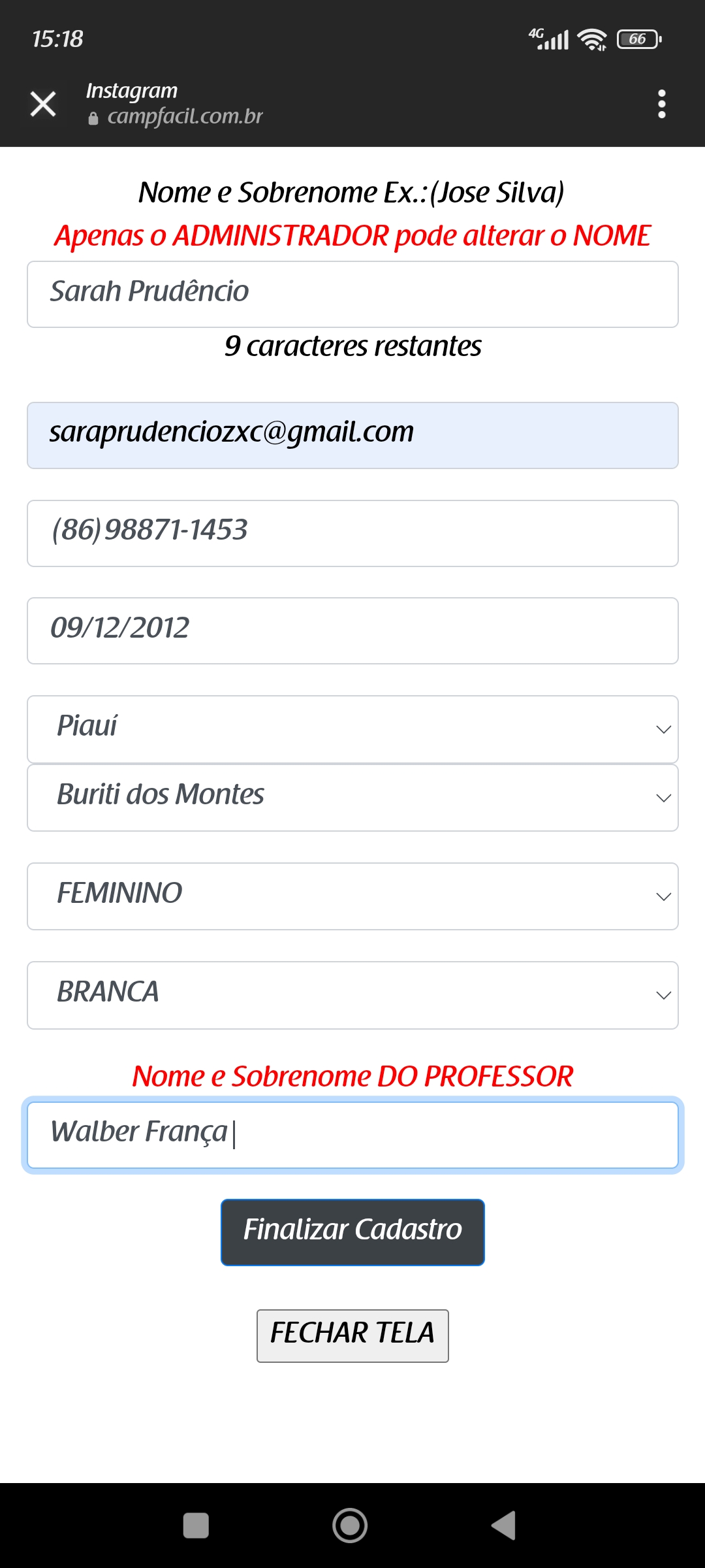 | 30.00 | MARIA FERNANDA PEREIRA | BRANCA | ALLIANCE | INFANTIL | 4 | Ver evento |